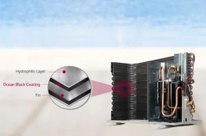 کندانسورهای بلو فین با یک پوشش آبدوست طراحی شدهاند که به فینهای آلومینیومی کمک میکند آب را جذب کنند و آنها را در برابر خوردگی ناشی از رطوبت و عناصر محیطی مقاومتر میکند.